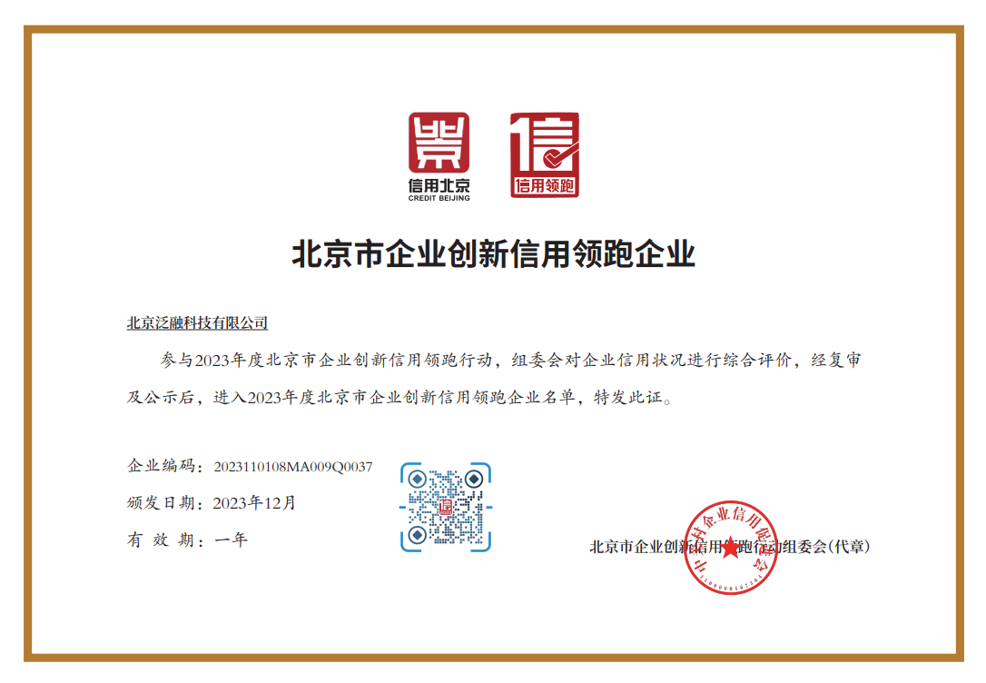 米兰(中国)AC米兰和泛融科技获评2023年度北京市企业创新信用领跑企业