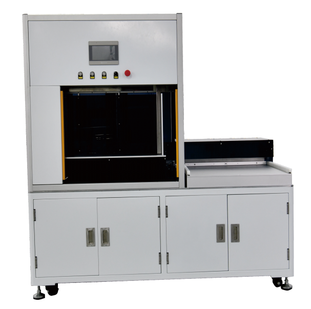 该产品是面向烟草卷包车间专门研发的一款全自动去除盒烟外覆透明膜的机电一体化设备。针对人工处理效率低、劳动强度大等痛点。采用热切刀分割技术和真空负压吸附技术,实现快速去膜。自动化程度高,具备自动给料、精准分割、自动去膜及自动收料摆盘等功能。产能显著优于传统人工作业,提高生产效率,降低人工劳动强度,减少作业风险。兼容多品规盒烟,满足不同客户需求。